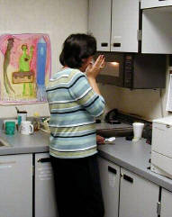 . Because she is at the microwave